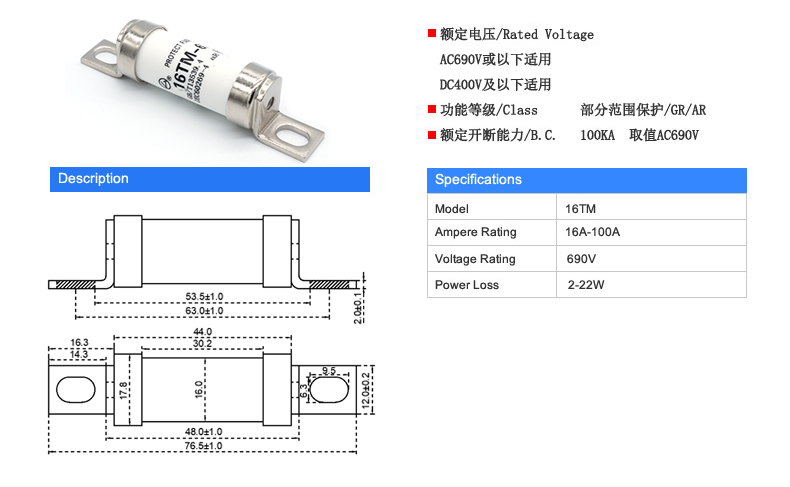 系列熔断体适用于额定交流电压最高至690V,直流电压最高至400V的配电环境中,作为软启动器、变频器、小型电源站、逆变器、UPS系统,线路板集成模块及半导体器件的短路保护