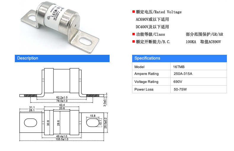 该系列熔断体限流能力强,温升低,响应故障电流速度快,结构与电气性能设计符合国际IEC60269及国家GB13539标准