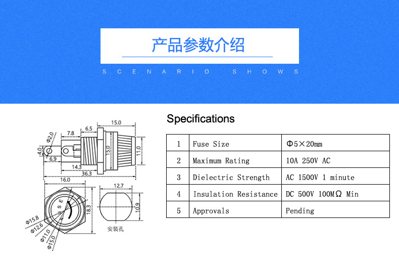 电流:15A 电压:250V 尺寸5*20规格