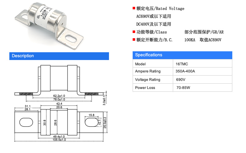 系列熔断体适用于额定交流电压最高至690V,直流电压最高至400V的配电环境中,作为软启动器、变频器、小型电源站、逆变器、UPS系统,线路板集成模块及半导体器件的短路保护