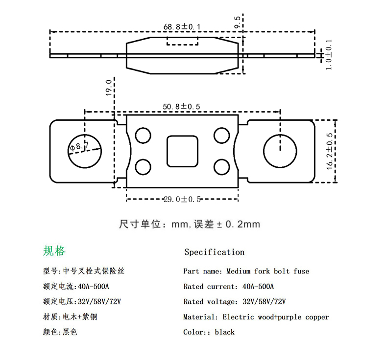 中号叉栓式保险丝