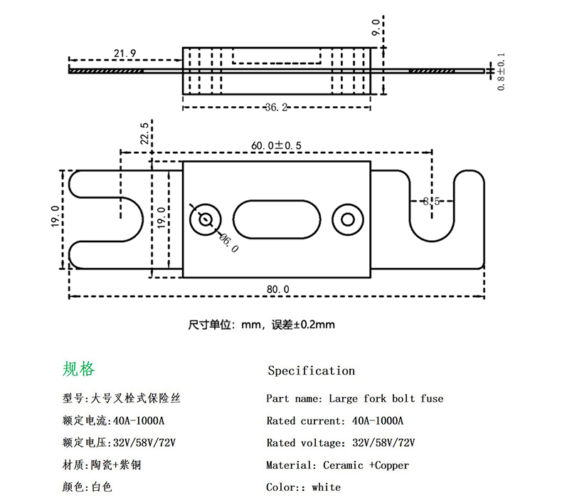 大号叉栓式保险丝