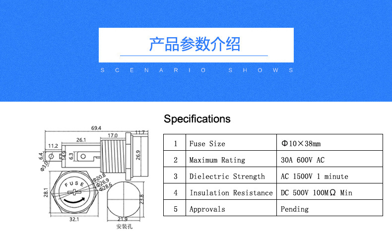 电流:10A 电压:250V 尺寸6*30规格